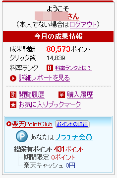 楽天アフィリエイトをスタートさせたばかりの 初心者時代の 成果。